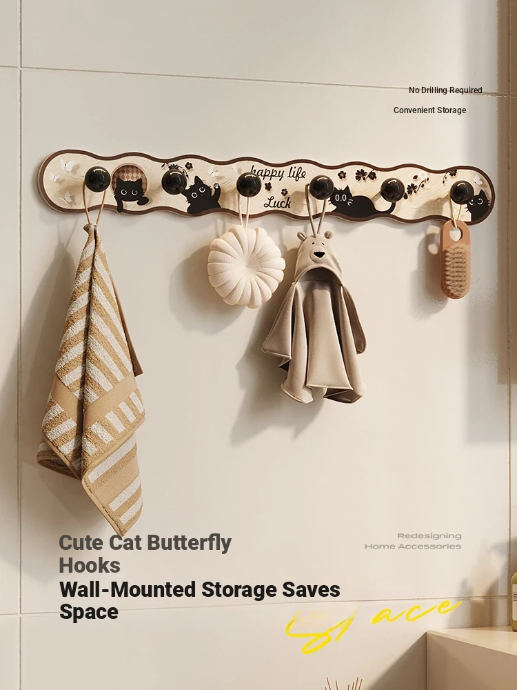 Meisida New No-Drill Cute Cat Hooks – Stylish Adhesive Hangers for Home, Bedroom, and Entrance – Perfect for Organizing Coats and Hats!