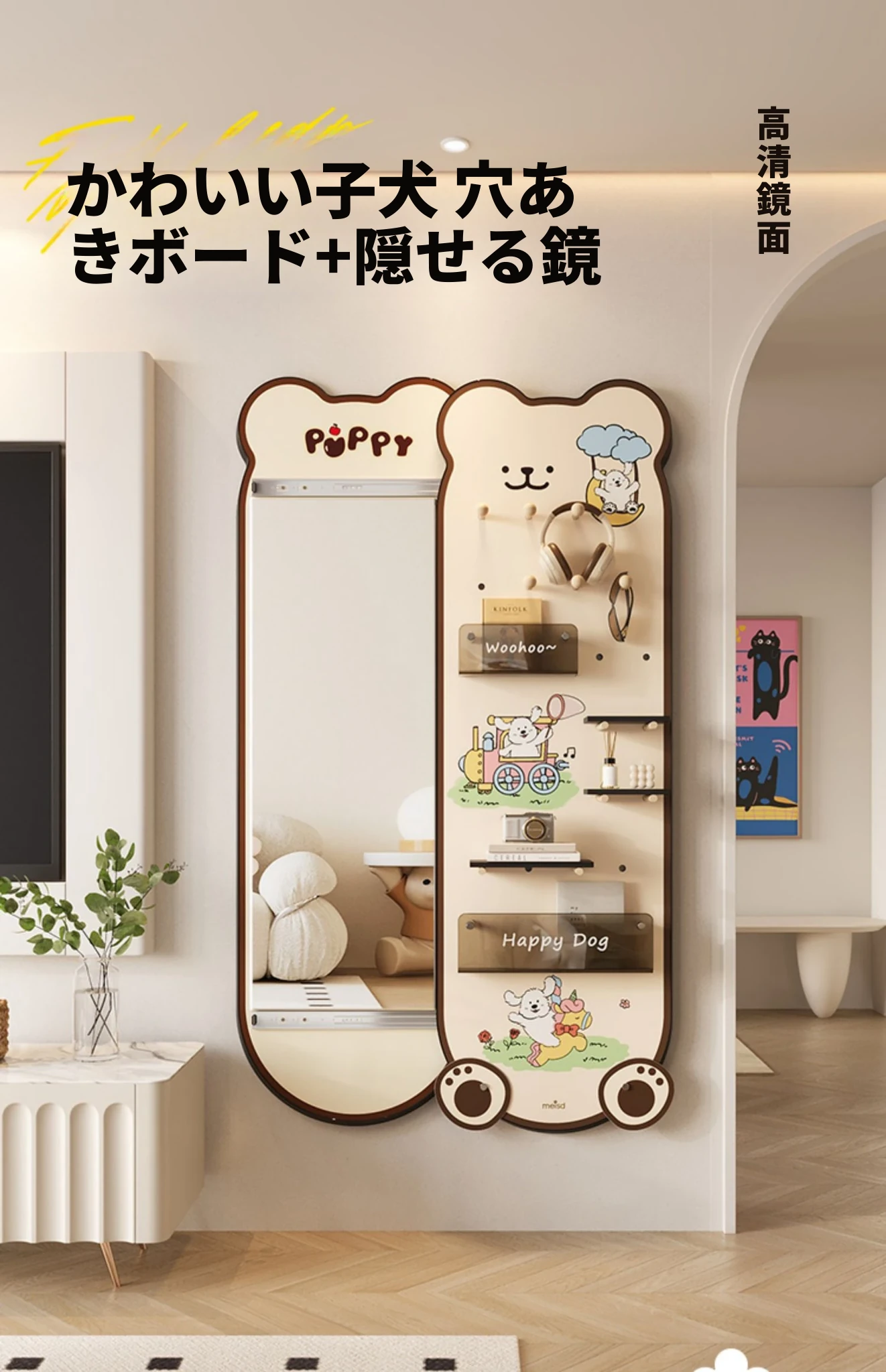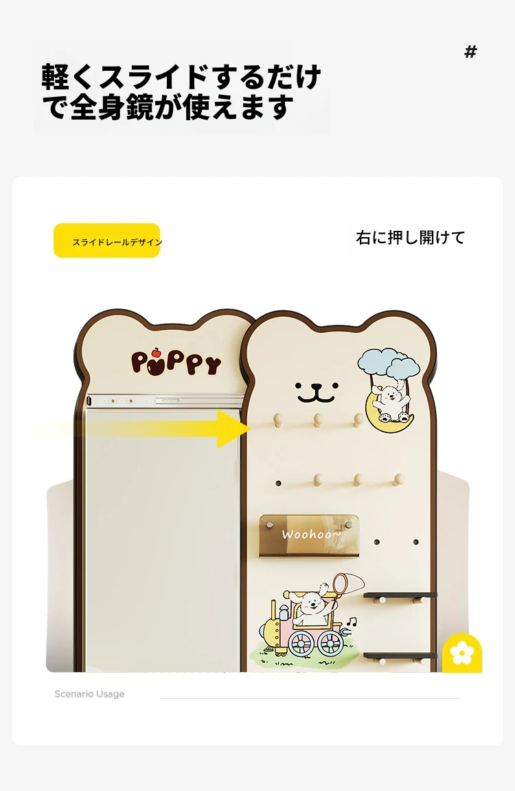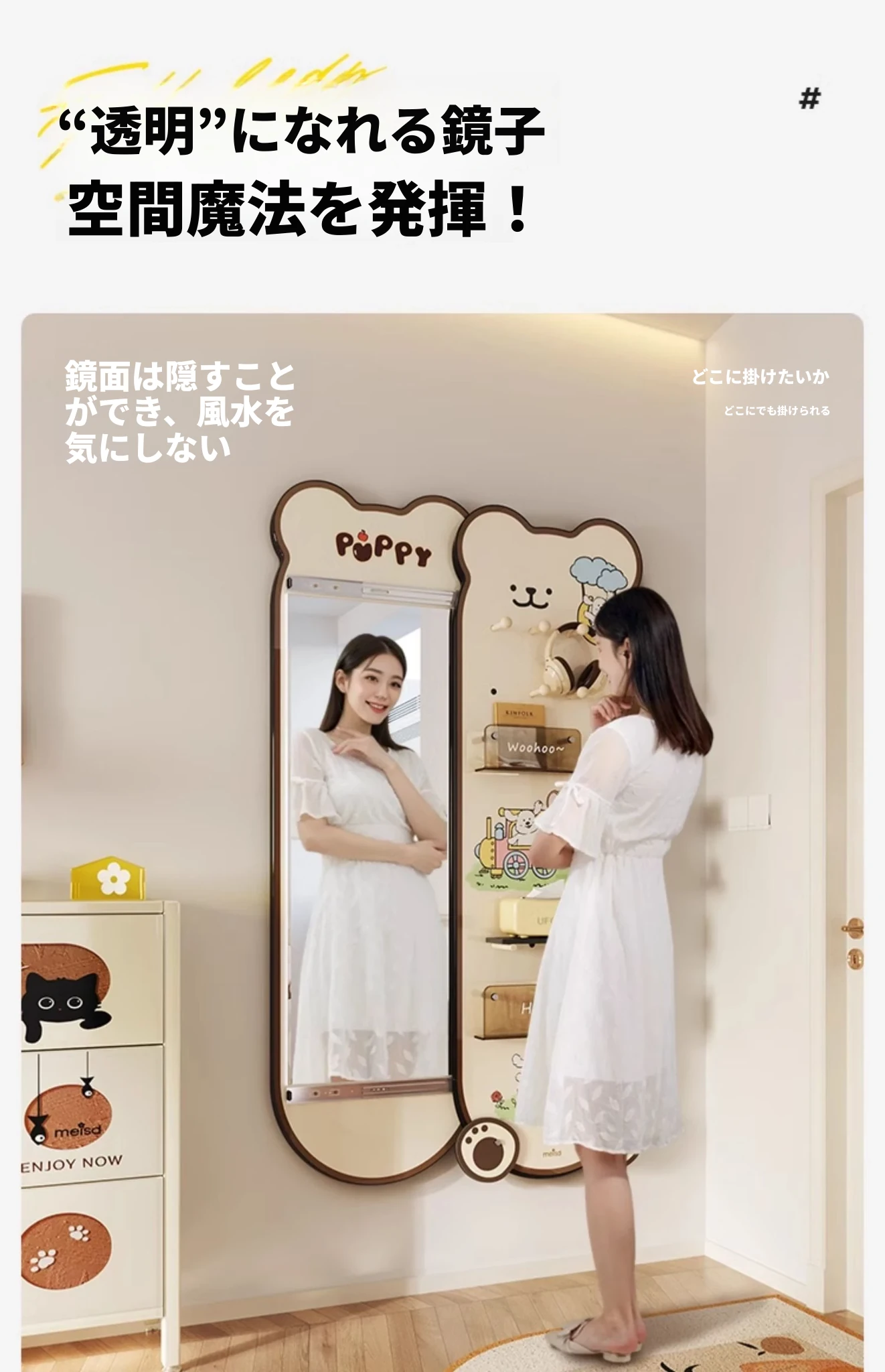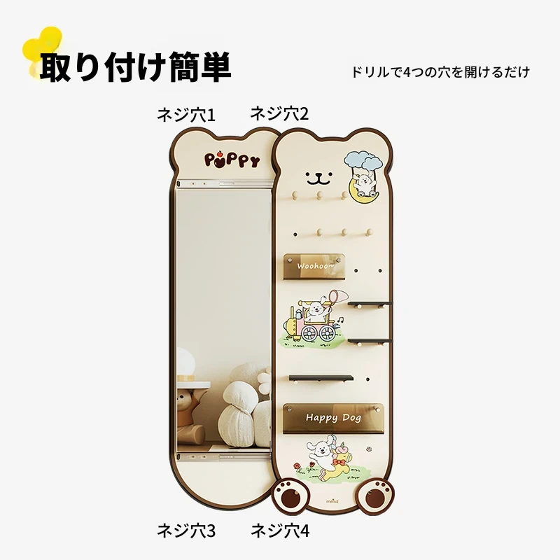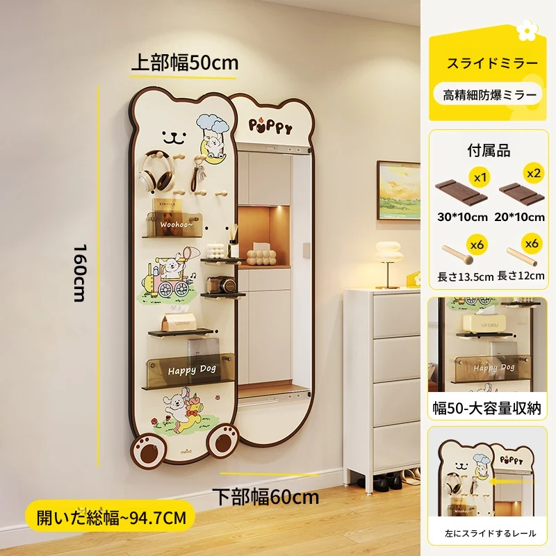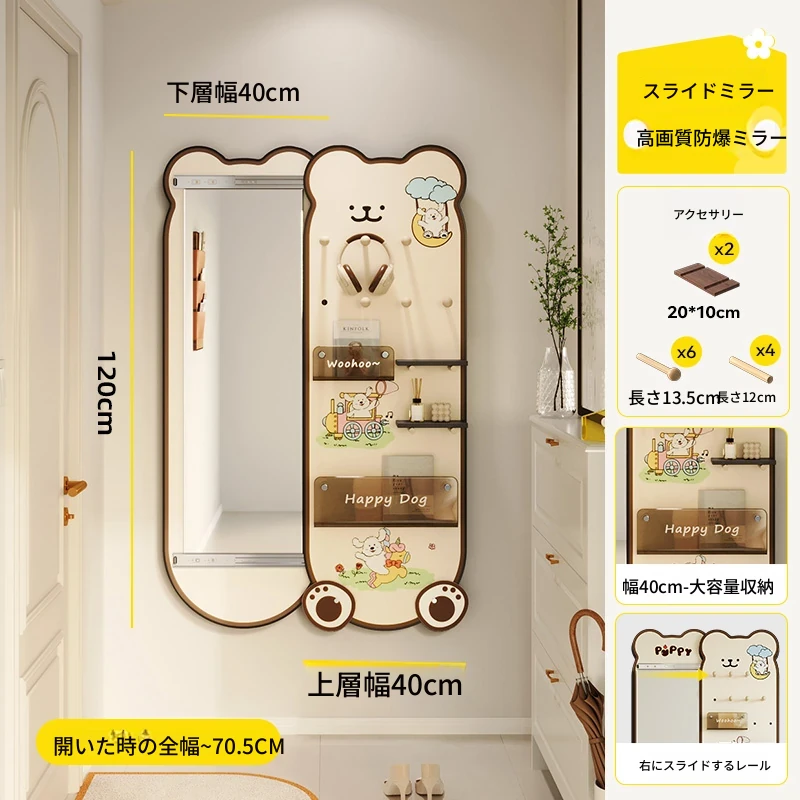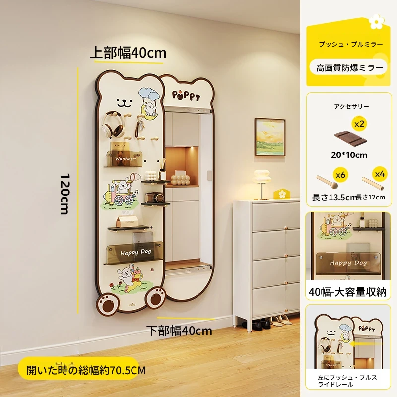 美世达の隠れた全身鏡!玄関にぴったりなプッシュプル式の壁掛けミラー。おしゃれなデザインで、スペースを有効活用。試着も楽々、訪れるたびに新しい発見を!