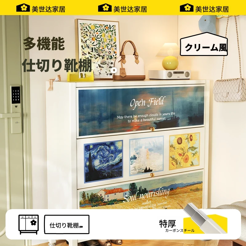 美世达2025年新作!超薄極狭デザインの翻斗シューズキャビネット—家の入り口にぴったり!スチール製で頑丈、収納力抜群。スタイリッシュな玄関を演出し、あなたの靴をすっきり整理整頓!