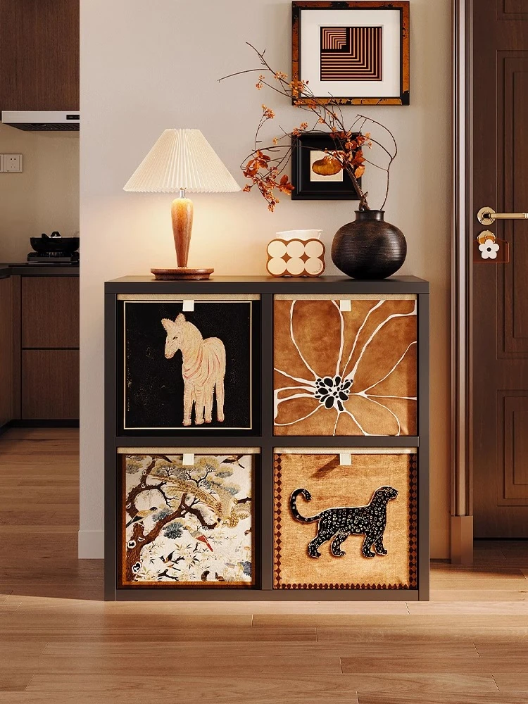 ミセダ壁付けダイニングサイドキャビネット - スチール製のカラフルなグリッド収納、家族のキッチンに最適な便利な収納ソリューション!