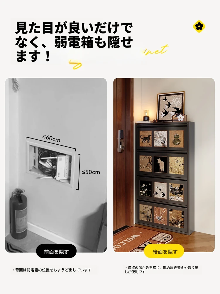 美世达の取り付け不要な超薄型シューズキャビネット - 壁にぴったりフィット、狭い玄関に最適!スッキリ収納で、入るだけで心地よい空間を演出します。